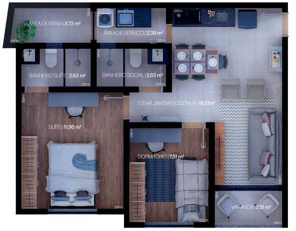 Apartamentos de 2 quartos, sendo 1 suíte, com 355 m² de lazer e bem estar completos em um rooftop que ainda conta piscina de borda infinita e vista panorâmica. O empreendimento inclui garagem para carros e motos, proporcionando funcionalidade e praticidade para o dia a dia.